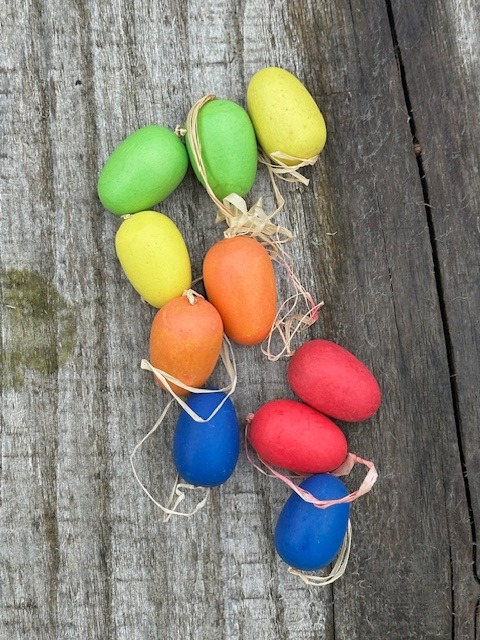 Sada 10 ks dřevěných vajíček k zavěšení .