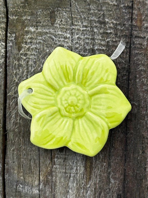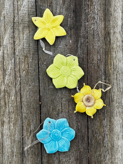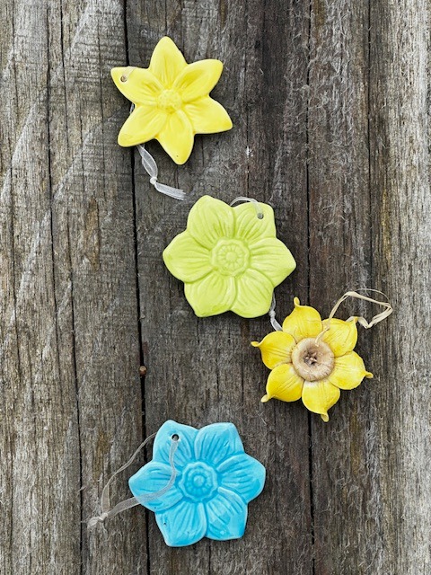 Modrý keramický květ k zavěšení či jiné dekoraci.