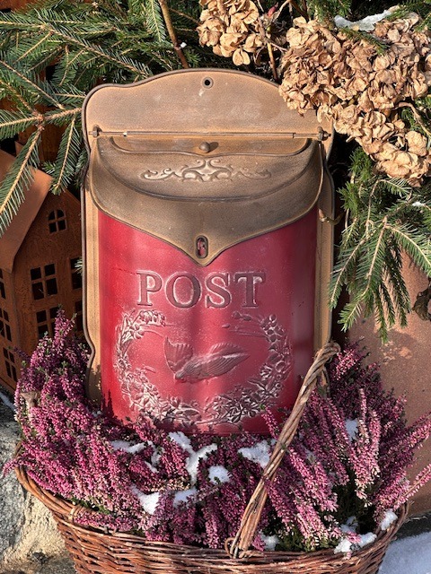 Krásná vintage kovová poštovní schránka, k zavěšení.