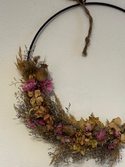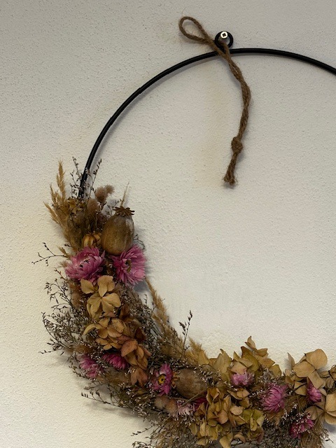 Černý kovový kruh s háčkem pro zavěšení pro tvorbu vašich dekorací, věnců apod.