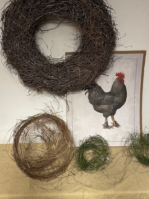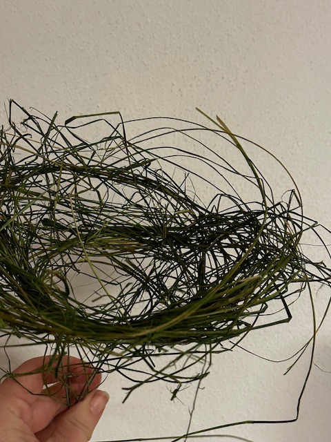 Manžeta pro snadnou výrobu a vázání kytice , kovová konstrukce tvoří podpěru a přírodní seno/tráva dotváří dokonalý vzhled kytice v rustikálním vzhledu.