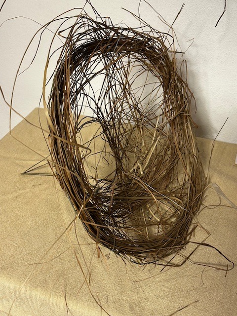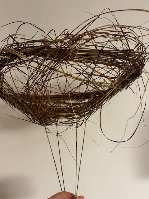Manžeta pro snadnou výrobu a vázání kytice , kovová konstrukce tvoří podpěru a přírodní seno/tráva dotváří dokonalý vzhled kytice v rustikálním vzhledu.