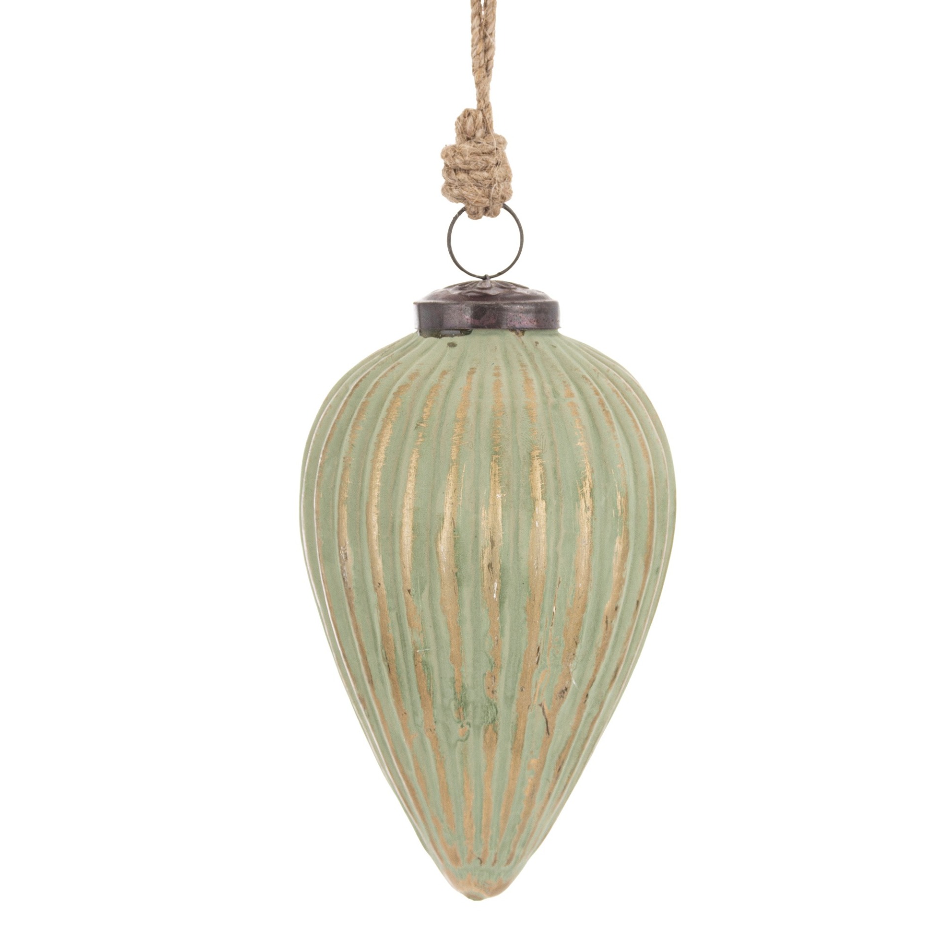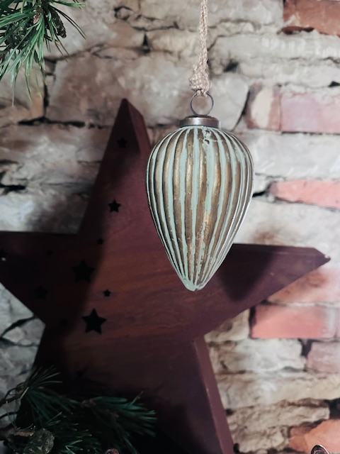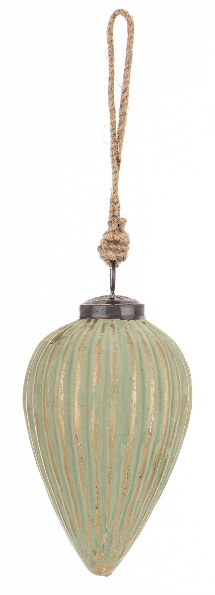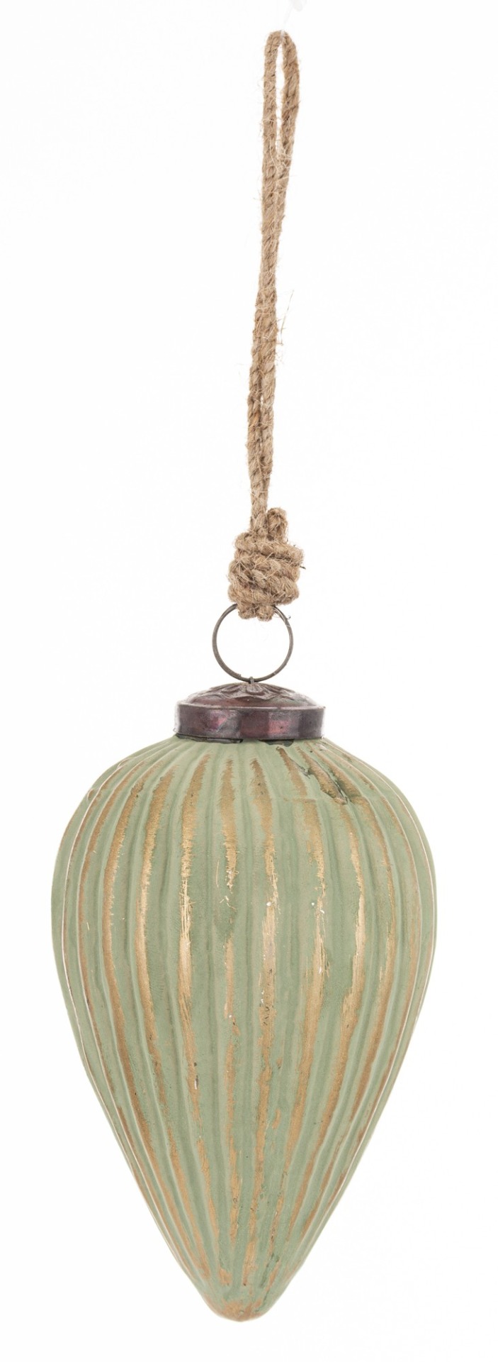 Masivní ozdoba ve tvaru kapky ve vintage stylu s patinou, v barvách zelená-hnědá-zlatá , na jutovém provázku.