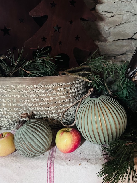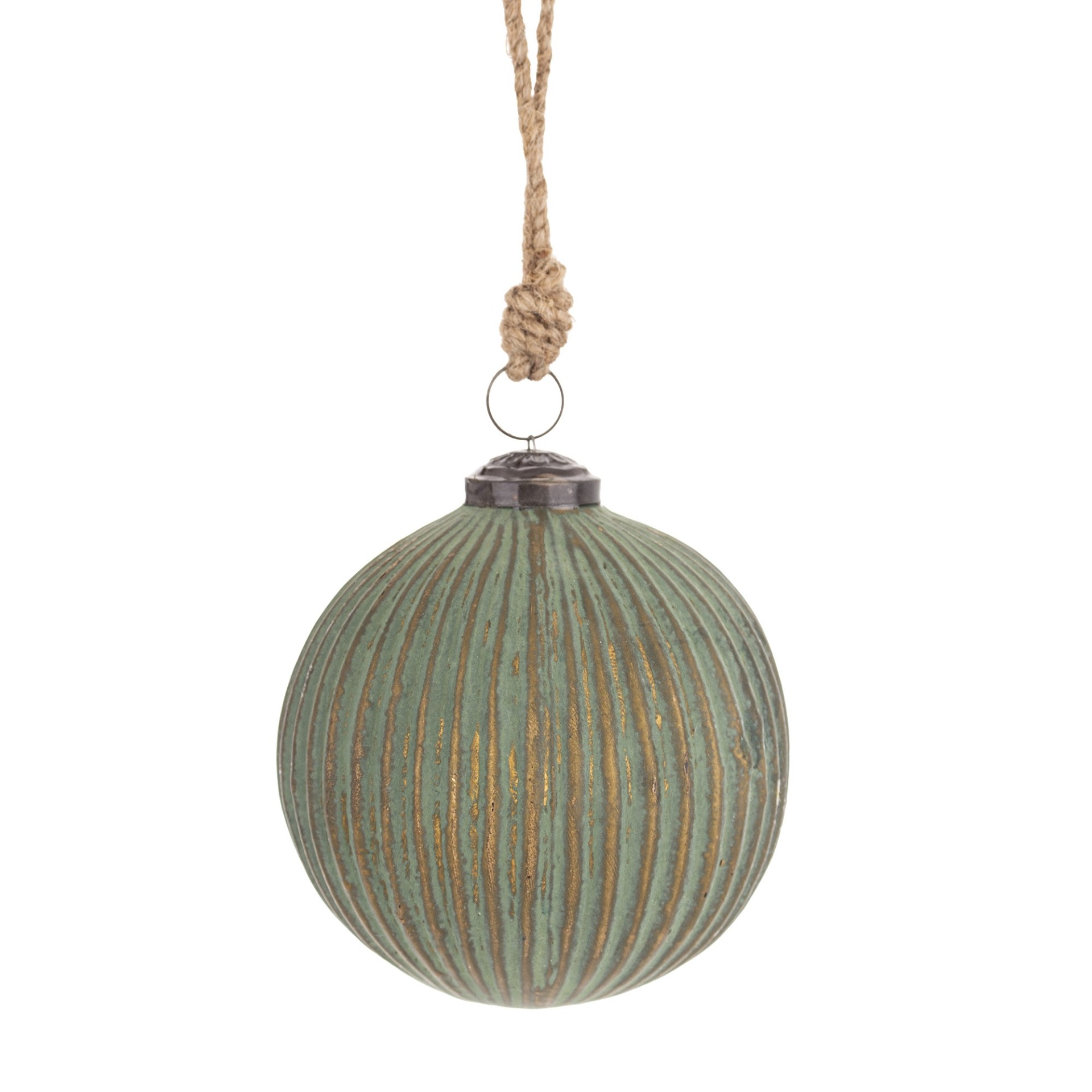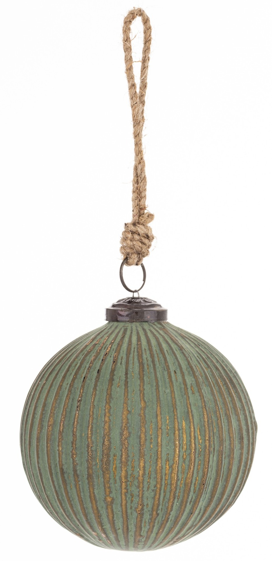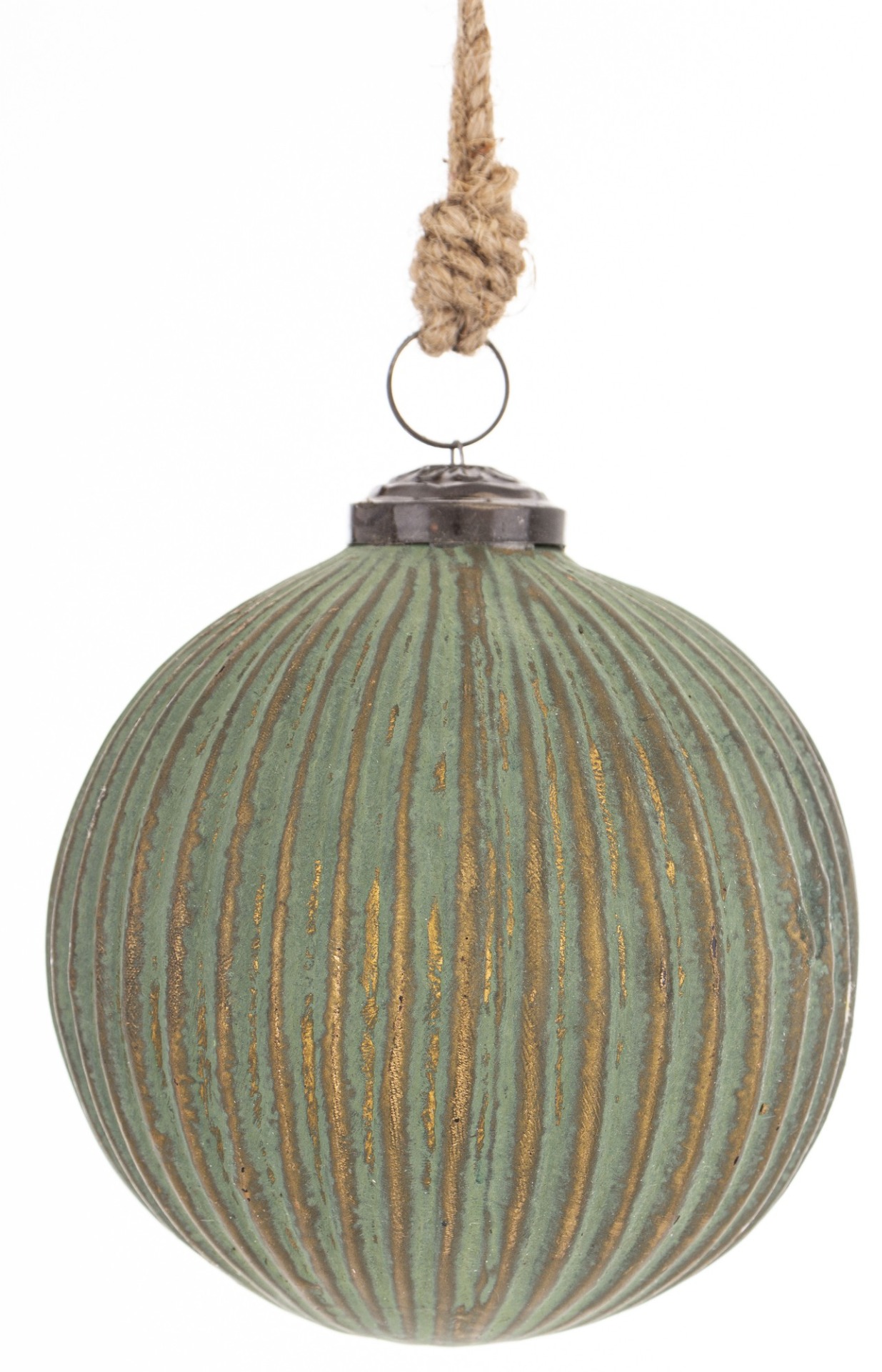 Extra velká a masivní koule ve vintage stylu s patinou, v barvách zelená-hnědá-zlatá , na jutovém provázku.