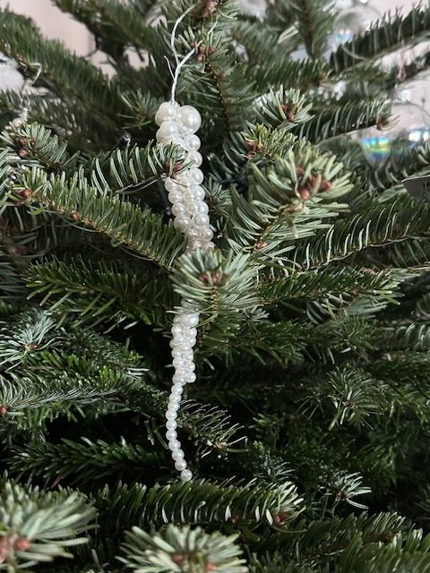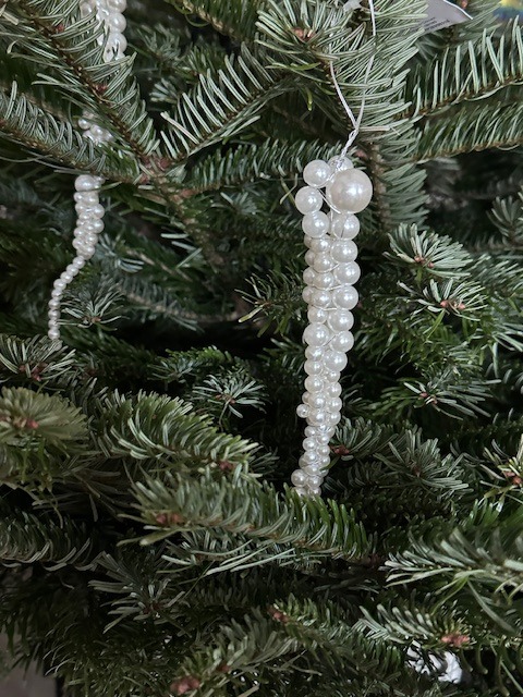Dlouhá závěsná ozdoba , 25 cm, složená z drobných perliček. Mimořádně efektní a zajímavá ozdoba nejen na vánoční stromky ale i svícny apod.